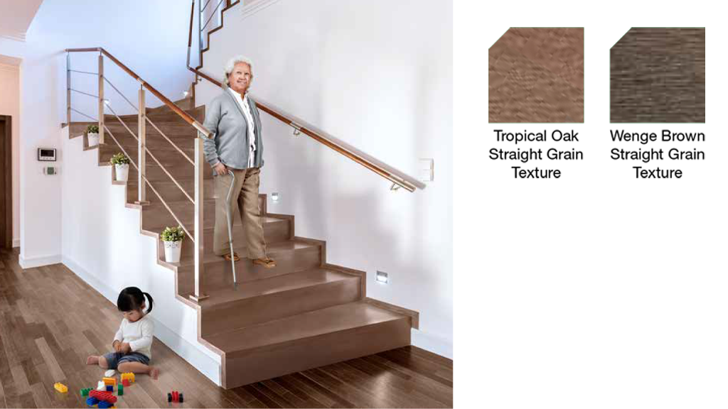 Floor Stair sangat kuat dan mampu menahan beban berat. Selain ketangguhan dan keindahannya yang menyerupai kayu, Floor Stair juga menawarkan kemudahan pemasangan untuk memaksimalkan kekuatannya, dapat diaplikasikan pada rangka logam atau beton, dan beragam pilihan yang dapat disesuaikan dengan desain pilihan Anda.